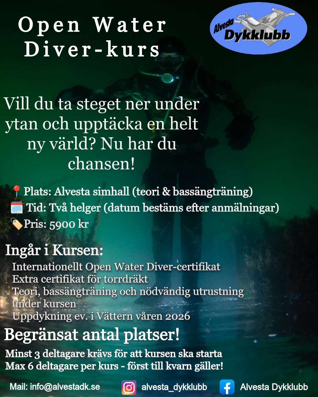 Försäkring och Sportdykaren ingår i medlemskapet.